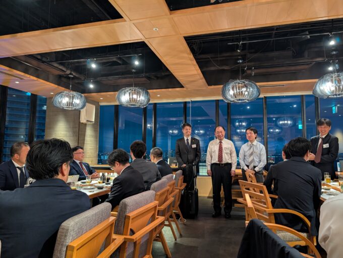 講義終了後の懇親会は、夕暮れの神戸港が見えるお店で任意参加として開催しました。今回は特別に、当塾の修了生が3名参加していただき、塾を修了してからこれまでの歩みなどを塾生に語ってもらいました。プロコンとして活躍している多くの先輩から話を聞いて、塾生も勇気が湧いたと思います。等身大の修了生の話を聞くことで自身の将来像を描くことができたことでしょう。