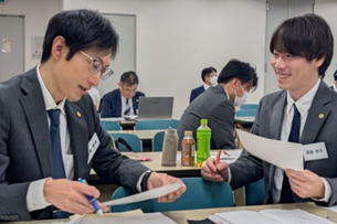 相手と会話することは我々中小企業診断士の仕事の基本です。来るべき支援先へのプレゼンテーションに備え、塾生は緊張感をもって取り組んでいましたが、その中にも笑顔が溢れる、実践的な学びの場となりました。